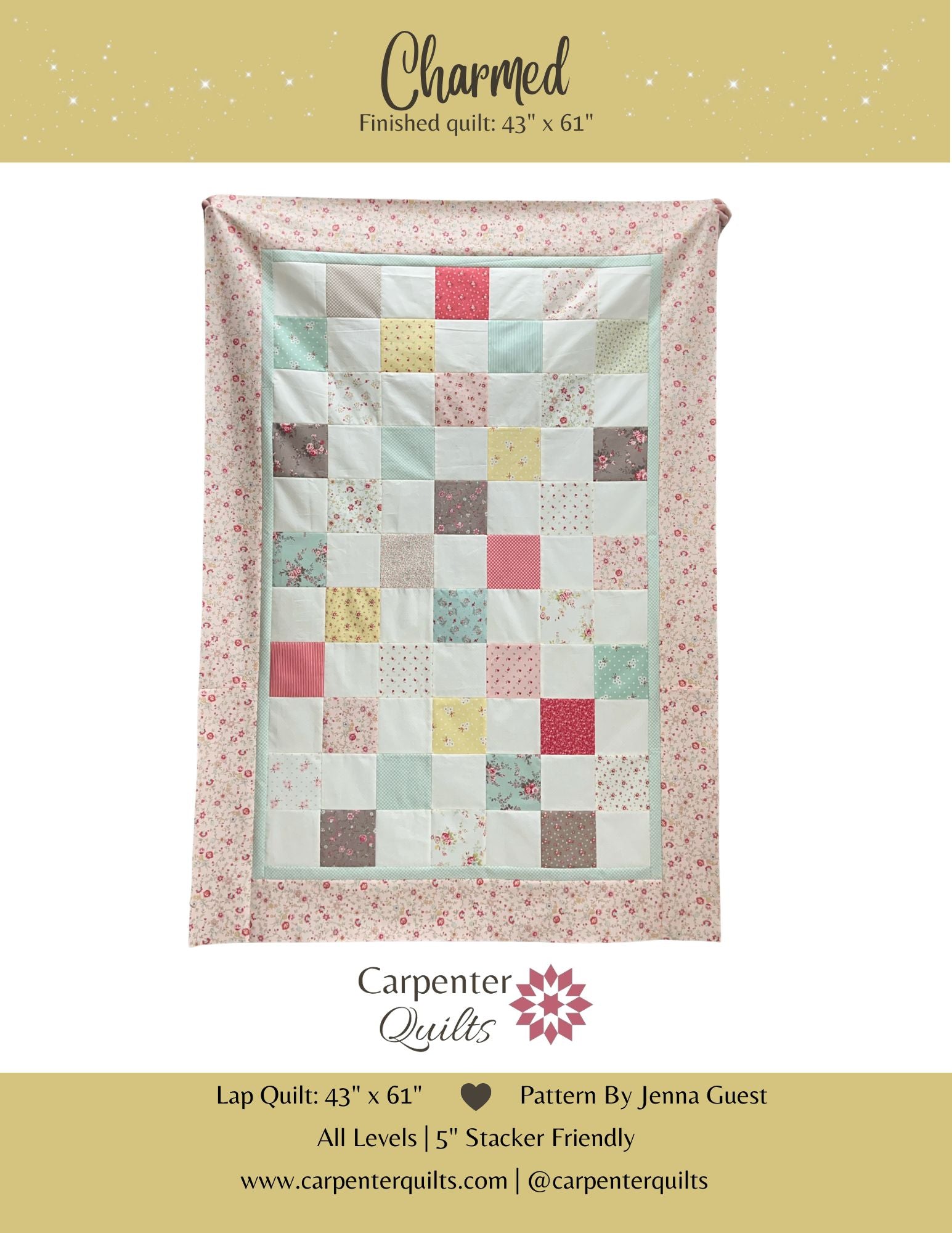 Please enjoy this free quilt pattern, from me to you! This pattern is 5" stacker (charm pack) friendly. You'll get an email to download the PDF after you checkout. #cqcharmedquiltpattern - I can't wait to see what you create!